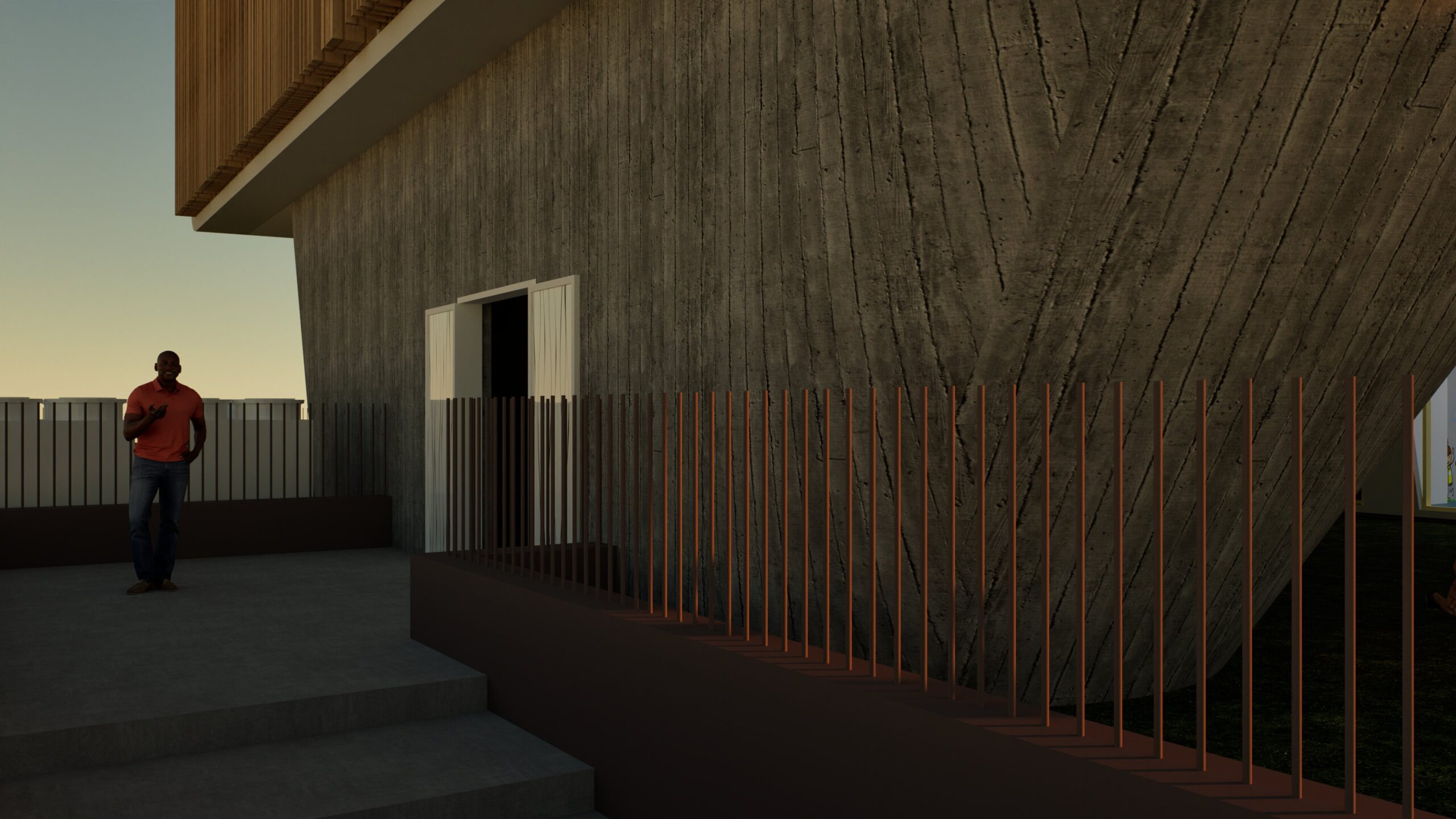 One of the most striking elements of the building is the interplay between volumes, with the primary school level cantilevered above the ground and basement floors. This design is not only visually distinctive but also highly functional. The cantilevered form creates shaded outdoor areas on the ground floor, offering protection from direct sunlight and rain, allowing children to play outside in a protected space. The use of heavy concrete pillars for support adds a robust, industrial touch while ensuring the building’s structural integrity.