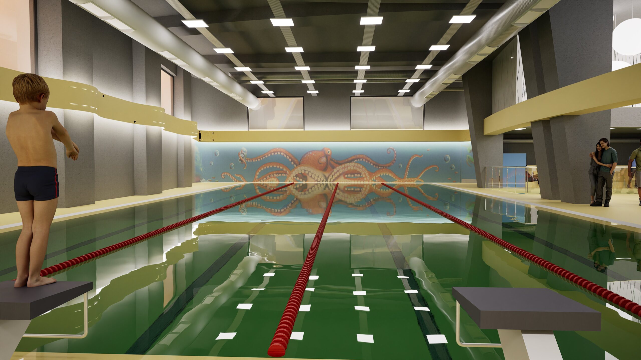 The basement swimming pool is a key feature that sets this project apart. It’s more than a recreational facility — it’s a space that encourages physical development and offers aquatic education as part of the school’s curriculum. Despite being underground, the pool is designed to feel bright and open, with artificial lighting systems mimicking natural light. Safety is a priority, with child-friendly entry points and non-slip surfaces.